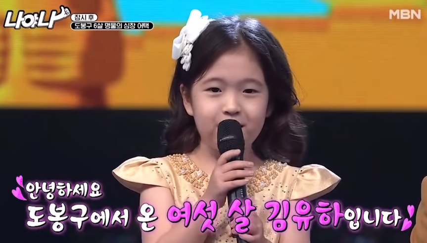 김유하는 MBN 대한민국 팔도 명물 인증쇼 '나야나'에 출연해 도봉구에서 온 6살 김유하로 출연해 최연소 트로트 신동으로 나와 '고추'를 불렀습니다.