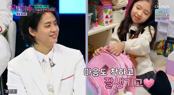 유하는 국민가수에서 함께 호흡을 맞춘 이솔로몬에게 초등학교 입학 선물도 받았습니다.